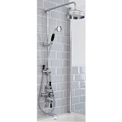 Milano Elizabeth Traditional Grand Rigid Riser with Exposed Triple Thermostatic Shower Valve, Round Rainfall Head, Hand Handset and Wall Mounted Bath Spout Chrome Black