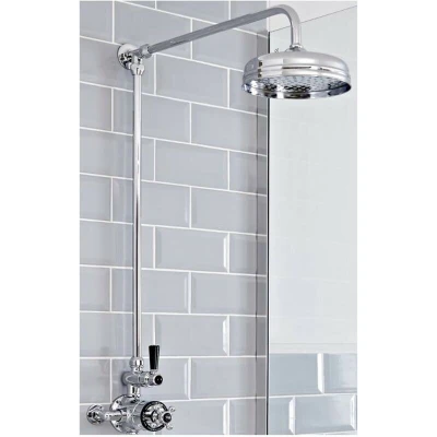 Milano Elizabeth Traditional Grand Rigid Riser with Twin Exposed Thermostatic Mixer Shower Valve and Round Rainfall Head Chrome Black