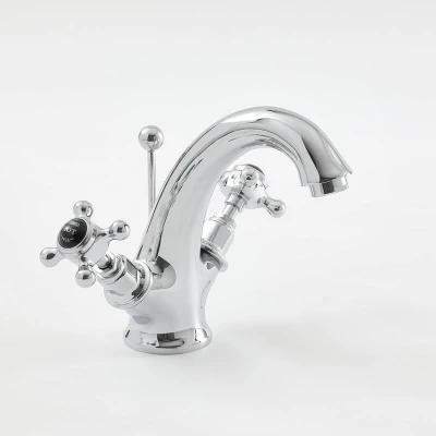 AmazonTraditional deck-mounted mono basin mixer tap with crosshead handles and detailed black ceramic indices for basins fitted with a single tap-hole Lead-free solid brass construction with chrome finish and ceramic disc technology to prevent leaks and drips Offers independent control of the hot and cold water Compatible with all types of plumbing system Includes slotted pop-up basin waste, Weight: 5.51155655 pounds, Manufacturer: Milano