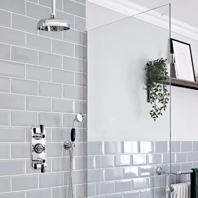 Milano Elizabeth Traditional Triple Thermostatic Mixer Shower Valve with Hand Handset and 205mm Round Rainfall Head Chrome Black