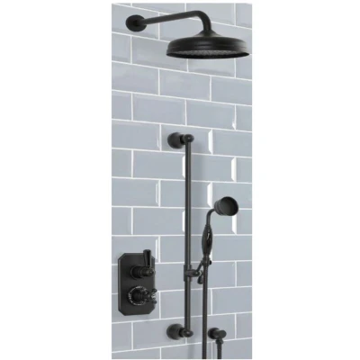 Milano Elizabeth Traditional Twin Diverter Thermostatic Mixer Shower Valve with 200mm Round Rainfall Head and Riser Rail Slide Bar Kit Black