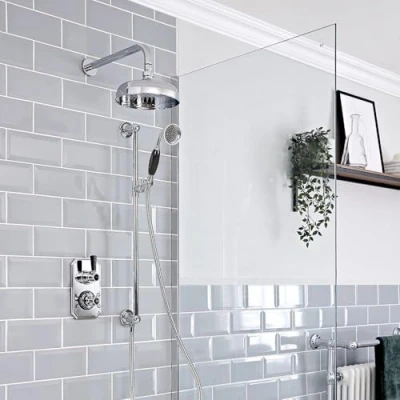 General description Enhance the timeless look of your bathroom and enjoy a spa-like experience with the Milano Elizabeth two outlet shower system. This premium quality shower system includes a twin thermostatic shower valve, a 205mm round shower head with a wall-mounted bracket, and a riser rail kit. The system offers thermostatic control and anti-scald technology to prevent sudden temperature changes, ensuring a luxurious and safe showering experience. Technical specifications Material: Solid brass with chrome finish Shower head diameter: 205mm Minimum recommended pressure: 1.0 bar Includes: Valve, shower head with wall arm, hand shower, riser rail, and integrated outlet elbow Usage Provides refreshing water coverage for a spa-like shower experience Ergonomic lever and crosshead handles for simple and intuitive use Riser rail allows for perfect positioning of the hand shower for users of different heights Other information Incorporates ceramic disc technology to prevent leaks and