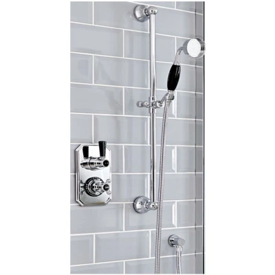 Milano Elizabeth Traditional Twin Thermostatic Mixer Shower Valve and Riser Rail Kit with Hand Handset, Hose, Slide Bar Outlet Elbow Chrome Black