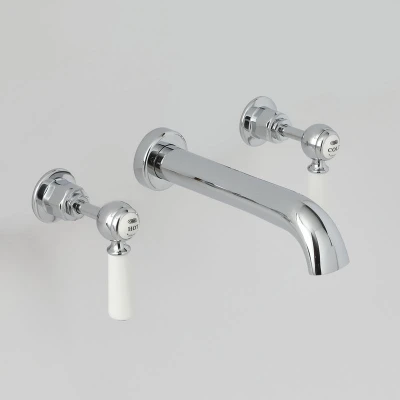 General description Enhance the traditional look of your bathroom with the wall-mounted Milano Elizabeth 3 tap-hole basin filler tap. Featuring a chrome finish, the tap includes ergonomic white ceramic lever handles with matching indices to independently control the hot and cold water with ease. The classic style will last for years to come thanks to the solid brass construction of the tap. Technical specifications Material: Lead-free solid brass Finish: Chrome and white Handles: White ceramic lever handles with detailed indices Operation: Clockwise turn for hot water and anticlockwise for cold Technology: Integral ceramic disc technology for drip-free use Recommended minimum pressure: 0.5 bar Other information This product is covered for 10 years You will need a waste