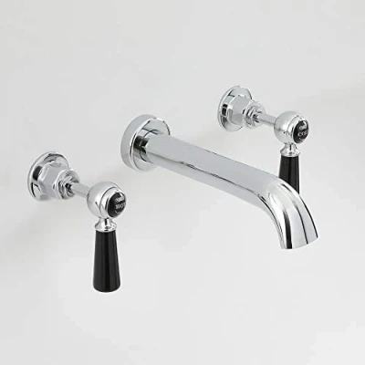 AmazonTraditional wall-mounted 3 tap-hole basin mixer tap with black ceramic lever handles and detailed indices Lead-free solid brass construction with chrome finish and ceramic disc technology to prevent leaks and drips Offers independent control of the hot and cold water Compatible with all types of plumbing system You will need a basin waste, Weight: 3.5935348706 pounds, Manufacturer: Milano