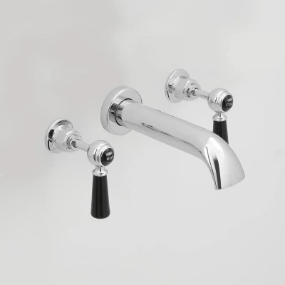 Milano Elizabeth Traditional Wall Mounted 3 Tap Hole Bath Filler with Lever Handles Chrome and Black