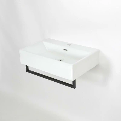 General description Create a contemporary look in your bathroom whilst adding a touch of style with the wall hung Milano Elswick rectangular basin and towel rail. This product offers ample wash space and is made from premium quality ceramic with an easy-to-clean glaze. The stainless steel towel rail, finished in eye-catching black, stylishly hangs below the basin to keep your towel close at hand. Technical specifications Material: Ceramic basin with hard-wearing white coating Towel rail: Stainless steel with black finish Dimensions: 605mm x 430mm x 145mm Single tap-hole for use with a mono basin tap Certified to EN14688 to ensure quality Covered for 10 years Compatibility and accessories Requires a mono basin tap Requires slotted or universal waste Requires bottle trap