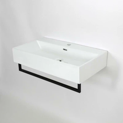 General description Create a contemporary look in your bathroom whilst adding a touch of style with the wall hung Milano Elswick 750mm rectangular basin and towel rail. Offering ample wash space, the basin is made from premium quality ceramic with an easy to clean glaze. The stainless steel towel rail, finished in eye-catching black, stylishly hangs below the basin to keep your towel close at hand ready for use. Technical specifications Material: Ceramic basin with hard-wearing white coating Towel rail material: Stainless steel with black finish Dimensions: 750mm x 420mm x 145mm Single tap-hole for use with a mono basin tap Certified to EN14688 to ensure quality Covered for 10 years Compatibility and accessories Requires a mono basin tap Requires slotted or universal waste Requires bottle trap