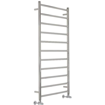 General description Keep your towels tidy and perfectly warmed with the modern ladder style Milano Esk flat heated towel rail. Made from premium quality stainless steel and accentuated by a contemporary chrome finish, this towel rail ensures your towels will always feel cozy and ready for use. Technical specifications Dimensions: 1200mm x 600mm x 32mm Heat output: 1058 BTUs / 310 Watts (T50); 559 BTUs / 164 Watts (T30) Construction material: Stainless steel Finish: Chrome Tested and certified to BS EN 442 standard ISO9001:2015 registered manufacturer Compatibility and accessories Radiator valves are required (not included) Includes blanking and bleed plug plus fixings Other information This product is covered for 10 years