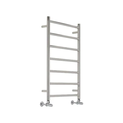General description Keep your towels tidy and perfectly warmed with the modern ladder style Milano Esk flat heated towel rail. Made from premium quality stainless steel and finished in contemporary chrome, this towel rail ensures your towels are always cosy and ready for use. Technical specifications Dimensions: 800mm x 500mm x 32mm Heat output: 625 BTUs / 183 Watts (T50); 332 BTUs / 97 Watts (T30) Construction: Stainless steel with chrome finish Standards: Tested and certified to BS EN 442 Manufacturer: ISO9001:2015 registered Compatibility and accessories Radiator valves are required (not included) Includes blanking and bleed plug plus fixings Other information This product is covered for 10 years
