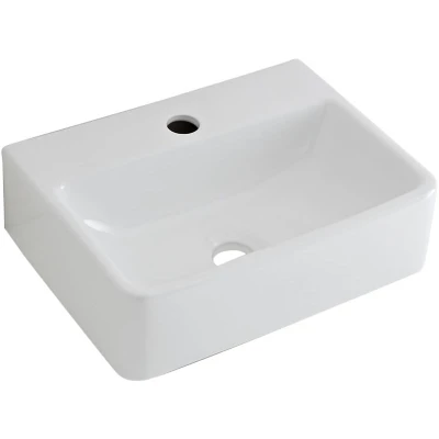 Milano Farington White Rectangular Countertop Wall Mounted 1 Tap Hole Bathroom Basin Sink 400mm x 295mm