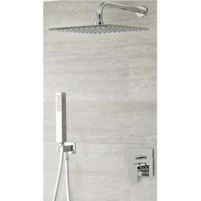 General description Enjoy a luxurious showering experience anytime with the modern Milano Hunston two outlet shower system. This system includes a manual diverter shower valve, a square shower head with a wall-mounted arm, and an ergonomic hand shower, all designed to provide a refreshing rainfall effect coverage. Technical specifications Shower head size: 300mm square Material: Anti-corrosive stainless steel Valve material: Solid brass Minimum recommended pressure: 0.5 bar Hand shower hose length: 1.75m Compatibility and accessories Compatible with all types of plumbing systems Includes a square hand shower, outlet elbow, and bracket Installation Wall-mounted installation for the shower head and arm Usage Intuitive control of water flow and temperature using the lever handle Integrated diverter for easy switching between shower outlets Silicone nozzles for easy cleaning and removal of limescale deposits Other information This product is covered for 10 years