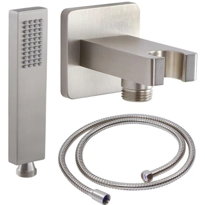 Milano Hunston Modern Square Hand Shower Handset with Wall Bracket and Outlet Elbow Brushed Nickel