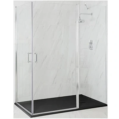 AmazonToughened glass and aluminium construction Includes 1000mm and 800mm hinged shower doors, 700mm fixed inline panel and 1700mm x 800mm graphite tray Hard-wearing polished aluminium finish Hinged doors allow easy entry to the enclosure Textured slate effect tray with fast flow waste Height of 1950mm to catch more splashes, Weight: 0.551155655 pounds, Manufacturer: Milano