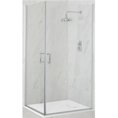 Milano Langley Traditional Chrome Corner Walk In Wet Room Double Hinged Door Shower Enclosure with White Slate Effect Tray and Fast Flow Waste