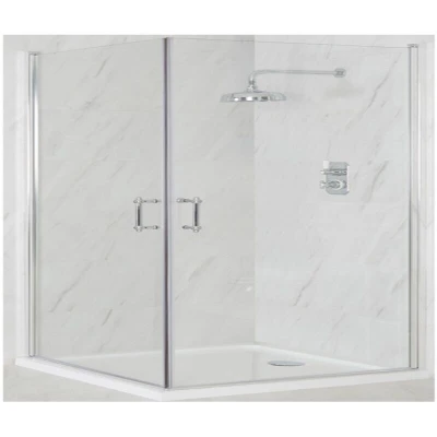 Milano Langley Traditional Chrome Corner Walk In Wet Room Hinged Door Shower Enclosure with White Tray and Fast Flow Waste 1000mm x 700mm