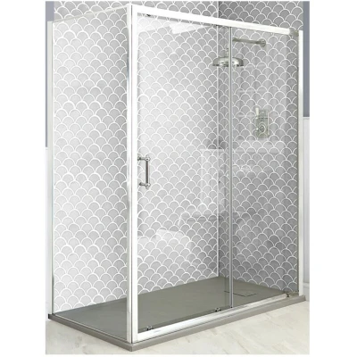 General description The Milano Langley corner shower enclosure features a sliding door, side panel, and a light grey slate effect tray, making it an ideal choice for creating a classic look in your bathroom. The enclosure is designed with a polished aluminium profile and a traditionally styled chrome brass handle, ensuring both style and functionality. Technical specifications Shower tray dimensions: 1700mm x 800mm x 30mm Panel height: 1850mm Glass thickness: 6mm toughened safety glass Door entry width: 747mm Other information Double rollers at the top and bottom for smooth operation Magnetic seal for secure and watertight closure Textured light grey slate effect shower tray with fast flow waste Certified to meet EN14428 and EN12150-2 quality standards This product is covered for 10 years