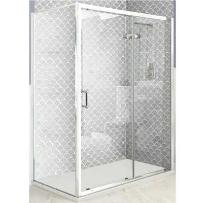 General description The Milano Langley corner shower enclosure features a sliding door, side panel, and a white slate effect tray, making it an ideal choice for creating a classic look in your bathroom. The enclosure is designed with a polished aluminium profile and a traditionally styled chrome brass handle, ensuring both style and functionality. Technical specifications Panel height: 1850mm Shower tray dimensions: 1000mm x 800mm x 30mm Door entry width: 397mm Glass thickness: 6mm Other information Made from premium quality toughened safety glass Features a magnetic seal for watertight closure Double rollers at the top and bottom for smooth operation Textured white slate effect shower tray with fast flow waste Certified to meet EN14428 and EN12150-2 quality standards This product is covered for 10 years
