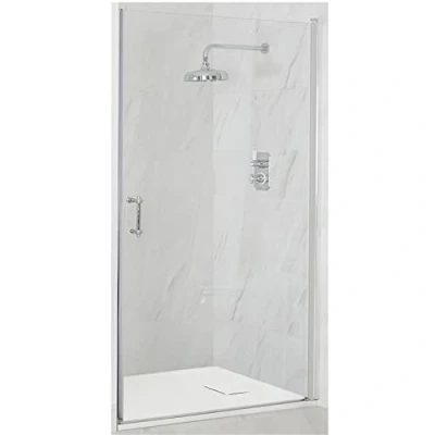 Milano Langley Traditional Chrome Wet Room Walk In Hinged Door Frameless Shower Enclosure with White Slate Effect Tray and Fast Flow Waste 800mm