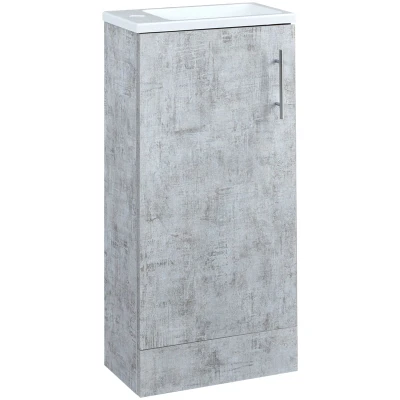 General description The freestanding Milano Lurus vanity unit and basin is the perfect way to create a stylish and practical modern look in your small bathroom or cloakroom. Featuring an integral cupboard with a reversible soft close door and chrome handle, it allows you to store your toiletries neatly out of sight. The striking concrete grey finish adds a contemporary effect, while the slimline design of the basin complements the vanity unit perfectly. Technical specifications Dimensions: 400mm x 220mm x 800mm Material: Moisture resistant engineered wood Finish: Concrete grey Standards: Tested and certified to meet EN14749 and EN14688 Compatibility and accessories Requires a mono basin tap Unsotted waste and flexible bottle trap are needed Installation Assembly required using the included clear and concise instructions before installation Usage Designed for use in small bathrooms or cloakrooms Other information This product is covered for 5 years