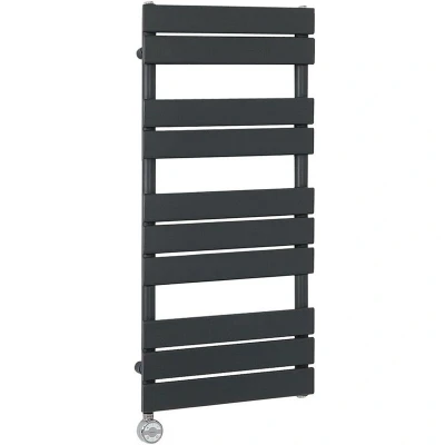 Milano Lustro 600W Anthracite Flat Panel Electric Heated Towel Rail Thermostatic Element 975mm x 450mm