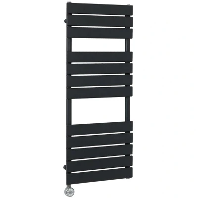Milano Lustro 600W Black Flat Panel Electric Heated Towel Rail Thermostatic Element 1200mm x 450mm