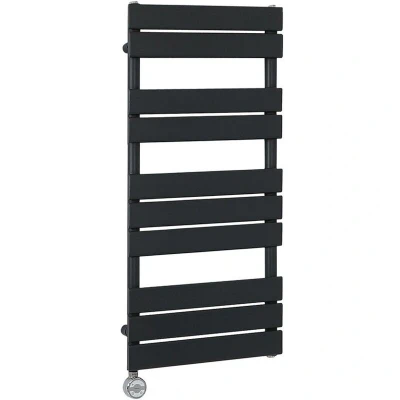 Milano Lustro 600W Black Flat Panel Electric Heated Towel Rail Thermostatic Element 975mm x 450mm
