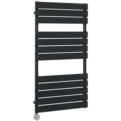 Milano Lustro 800W Black Flat Panel Electric Heated Towel Rail Thermostatic Element 1200mm x 600mm