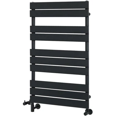 Perfectly warm your towels ready for use whilst adding a touch of contemporary style to your bathroom with the modern Milano Lustro dual fuel heated towel rail which is accentuated by an eye-catching black powder coated finish. Benefitting from premium quality steel construction the towel rail has an attractive flat bar design that provides plenty of room to neatly hang your towels and generates an impressive heat output. Dual fuel functioning means that it can be used as part of a central heating system or electrically using the included heating element for added convenience. A pair of black angled dual fuel valves and matching cable cover are included to complete the stylish look. - Black dual fuel flat panel heated towel rail - Steel construction with hard-wearing finish - Dual fuel design for central heating or electric operation - Generous heat output plus 600W heating element - Black angled dual fuel valves plus blanking and bleeding plug - Includes the fixings needed for