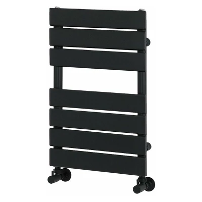 AmazonSteel construction for strength and durability Heat output of 873 BTUs / 256 Watts (T50); 466 BTUs / 136 Watts (T30) Dimensions: 600mm x 400mm x 45mm Modern flat panel heated towel rail design Hard-wearing black powder coated finish Includes blanking and bleed plug plus wall fixings Please note: Radiator valves are not included