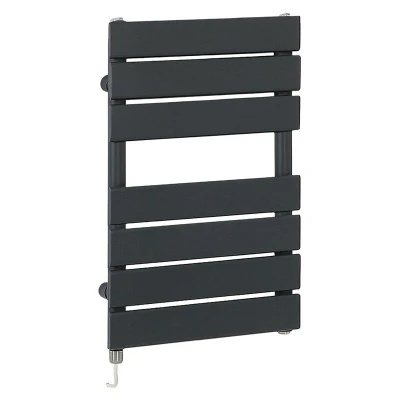 Milano Lustro Electric Anthracite Flat Panel Heated Towel Rail Radiator with Simple Heating Element 600mm x 400mm
