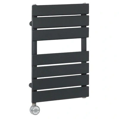 Milano Lustro Electric Anthracite Flat Panel Heated Towel Rail Radiator with Thermostatic Heating Element 600mm x 400mm