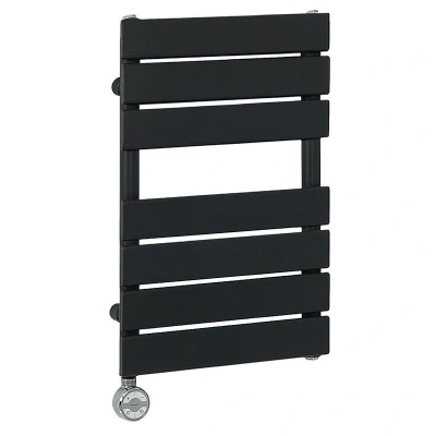General description Keep your towels perfectly warmed and add a touch of contemporary style with the Milano Lustro electric flat panel heated towel rail. This towel rail is pre-filled with glycol to maximize performance and prevent noise, rust, and limescale. It features premium quality steel construction and an attractive modern design, accentuated by a striking black powder-coated finish, providing ample space to hang your towels. Technical specifications Dimensions: 600mm x 400mm x 45mm Heating element power: 400W Temperature settings: 5 Installation Includes wall fixings and wall plugs for installation Hard-wiring of the heating element should be carried out by a qualified electrician Usage Thermostatic heating element with dryer function Efficiently distributes heat through the flat bars Other information ISO9001:2015 registered manufacturer This product is covered for 10 years