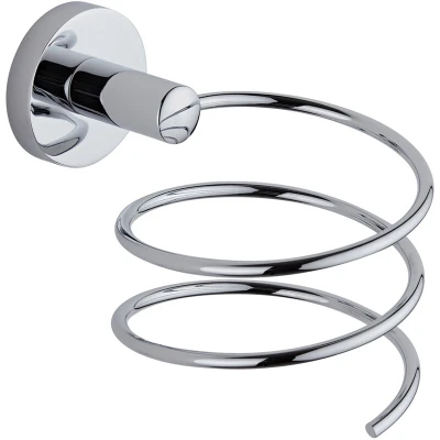 Milano Mirage Modern Round Coiled Wall Mounted Bathroom Hair Dryer Blower Holder Chrome