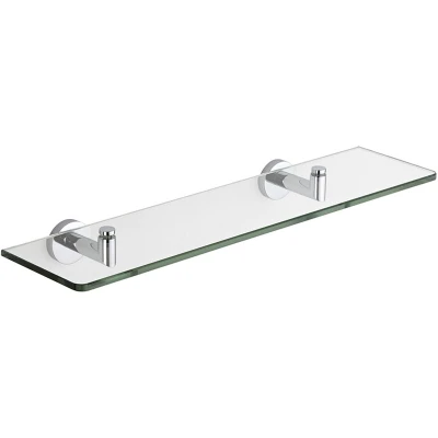 General description Introduce extra storage space for toiletries or decorative objects into your bathroom with the contemporary style of the wall-mounted Milano Mirage glass shelf. Perfectly combining toughened glass with chrome finished premium quality solid brass brackets, the shelf offers an attractive modern design that has the durability to last for years to come. Technical specifications Material: Toughened glass Brackets: Solid brass with chrome finish Dimensions: 500mm x 143mm x 58mm Installation Concealed fixings for neat installation Supplied with a fixing kit Usage Allows you to display toiletries or decorative items Other information This product is covered for 2 years
