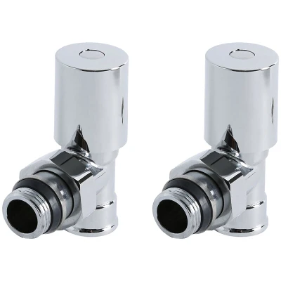 AmazonModern pair of angled manual radiator valves Solid brass and ABS construction with chrome finish Dimensions: 63.18mm x 30.17mm x 79mm Valves fitted with 1/2" female threads Suitable for use with a radiator or heated towel rail, Weight: 0.9259415004 pounds, Manufacturer: Milano