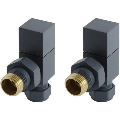 Milano Modern Pair of 15mm Anthracite Grey Square Angled Heated Towel Rail Radiator Valves