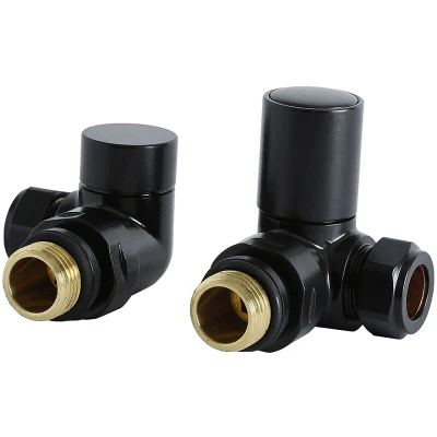 Milano Modern Pair of 15mm Black Corner Heated Towel Rail Radiator Valves