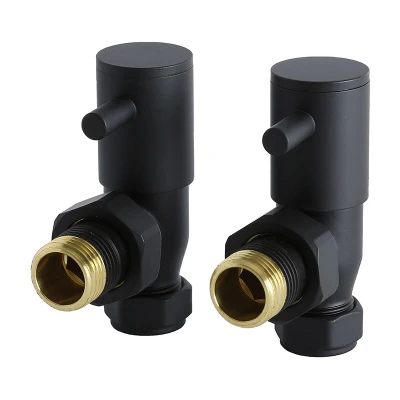 Milano Modern Pair of Black Angled Heated Towel Rail Radiator Valves