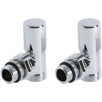 General description Enhance the stylish and contemporary look of your radiator or heated towel rail with this pair of Milano angled valves. These modern valves are designed to complement your heating appliance while providing functionality. Technical specifications Material: Solid brass Finish: Chrome Pipe compatibility: 15mm copper pipes Includes eurocone adapter for use with metal-plastic, polymer, thin-walled copper, and stainless steel fittings Warranty: 5 years Other information Supplied as a pair of valves
