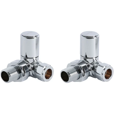 Enhance the stylish and contemporary look of your radiator or heated towel rail with this pair of Milano corner valves. Benefitting from premium quality solid brass construction and accentuated by a modern chrome finish to perfectly complement your heating appliance the valves are fitted with standard 1/2” threads to fit 15mm pipes. - Modern corner radiator valves with chrome finish - Solid brass construction for long-lasting durability - Suitable for use with a radiator or heated towel rail - Fitted with standard 1/2” threads to fit 15mm pipes - This product is covered for 5 years - Supplied as a pair of valves Please note: These valves are bi-directional.