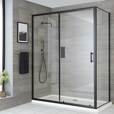 General description Accentuate the modern style of your bathroom or en-suite with the Milano Nero 1100mm sliding shower door and 700mm side panel. Featuring a stunning black profile and premium quality toughened safety glass construction, this door is designed to catch more shower splashes. It boasts double rollers at the top and bottom for smooth opening and closing, as well as magnetic seals to ensure a watertight closure. The design allows for left or right-hand entry to perfectly suit your installation requirements. Technical specifications Dimensions: 1100mm x 1950mm (door); 700mm x 1950mm (side panel) Material: Toughened safety glass Height: 1950mm Compatibility and accessories Requires a shower tray and waste for installation Other information Supplied with all relevant fittings for installation Quick release mechanism for easy door cleaning Certified to EN14428 and EN12150-2 for quality assurance This product is covered for 10 years