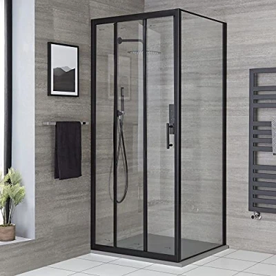 General description Add a stylish and contemporary look to your bathroom with the Milano Nero corner shower enclosure, which includes a triple sliding door, side panel, and light grey slate effect shower tray. The enclosure is designed for corner installation, making it perfect for various bathroom layouts. Technical specifications Height: 1950mm Shower tray dimensions: 800mm x 900mm x 30mm Glass thickness: 6mm toughened safety glass (5mm for door) Profile material: Matte black aluminium Other information Manufactured to EN14428 and EN12150-2 standards This product is covered for 10 years