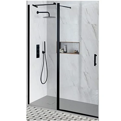 General description Accentuate the stylish look of your bathroom and shower in comfort with the reversible Milano Nero hinged door shower enclosure, which comes with a textured light grey slate effect shower tray. This enclosure is designed for installation in a recessed area, providing easy access and a modern aesthetic. Technical specifications Dimensions: 1600mm x 800mm Height of door and inline panel: 1950mm Entry width: 817mm Glass thickness: 6mm toughened safety glass Profile material: Matte black aluminium Other information Includes a 900mm hinged door and a 700mm fixed inline panel Textured light grey slate effect tray with fast flow waste Certified to meet EN14428 and EN12150-2 standards This product is covered for 10 years