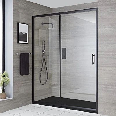 AmazonToughened glass and aluminium construction Includes 1000mm sliding door and 1000mm x 800mm graphite tray Hard-wearing black finish Smooth door rolling mechanism and magnetic seal for watertight closure Textured slate effect tray with fast flow waste Height of 1950mm to catch more splashes, Weight: 0.551155655 Pounds, Manufacturer: Milano