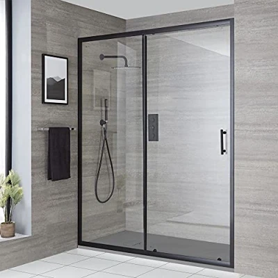 AmazonToughened glass and aluminium construction Includes 1400mm sliding door and 1400mm x 800mm light grey tray Hard-wearing black finish Smooth door rolling mechanism and magnetic seal for watertight closure Textured slate effect tray with fast flow waste Height of 1950mm to catch more splashes, Weight: 0.551155655 pounds, Manufacturer: Milano