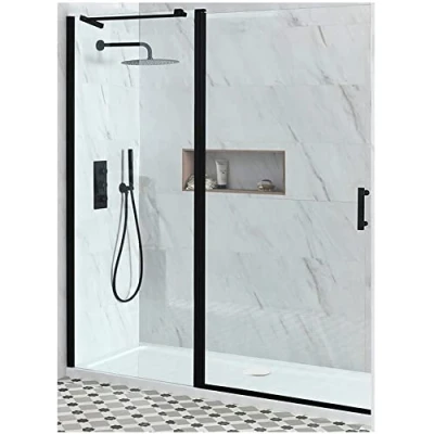 General description Accentuate the stylish look of your bathroom and shower in comfort with the reversible Milano Nero hinged door shower enclosure, which comes with a slimline white shower tray. This enclosure is designed for installation in a recessed bathroom area, providing easy access and a modern aesthetic. Technical specifications Dimensions: 1100mm x 900mm Height: 1950mm Door entry width: 617mm Material: 6mm toughened safety glass and matte black aluminium profile Tray material: Acrylic capped polymer resin Includes: 700mm hinged door and 400mm fixed inline panel Waste type: Fast flow waste Manufactured to standards: EN14428 and EN12150-2 Warranty: 10 years Installation Designed for installation in a recessed bathroom area Please refer to the line drawing for waste position Usage Magnetic door seal ensures watertight closure Low profile shower tray efficiently drains water