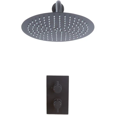 Milano Nero Modern 1 Outlet Twin Thermostatic Mixer Shower Valve with Wall Mounted 300mm Round Rainfall Head Black