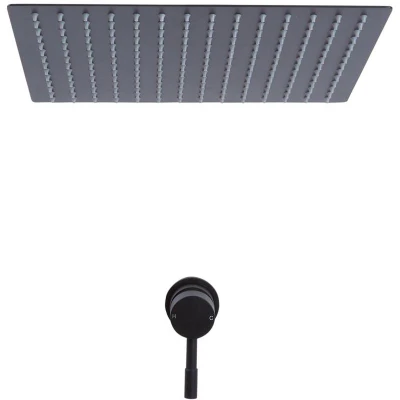 General description Make a bold and stylish statement in your modern bathroom with the minimalist look of the Milano Nero one outlet shower system, which includes a square recessed shower head and a manual shower valve. Finished in a stylish matte black, the shower system offers intuitive control of the temperature and flow of the water with an easy-to-use lever handle on the premium quality solid brass shower valve. The ceiling-mounted square shower head, made from anti-corrosive stainless steel, features 121 easy-to-clean silicone nozzles to produce rainfall effect coverage, providing a refreshing and luxurious showering experience. Long-lasting durability ensures that the stylish looks will last for many years. Technical specifications Shower head dimensions: 400mm square Minimum recommended pressure: 1.0 bar Material: Anti-corrosive stainless steel and solid brass Number of nozzles: 121 silicone nozzles Compatibility and accessories Compatible with all types of plumbing systems