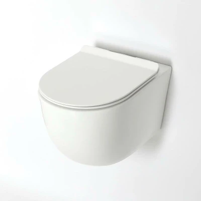 Milano Overton Modern White Ceramic Wall Hung Round Rimless Toilet WC Soft Close Seat